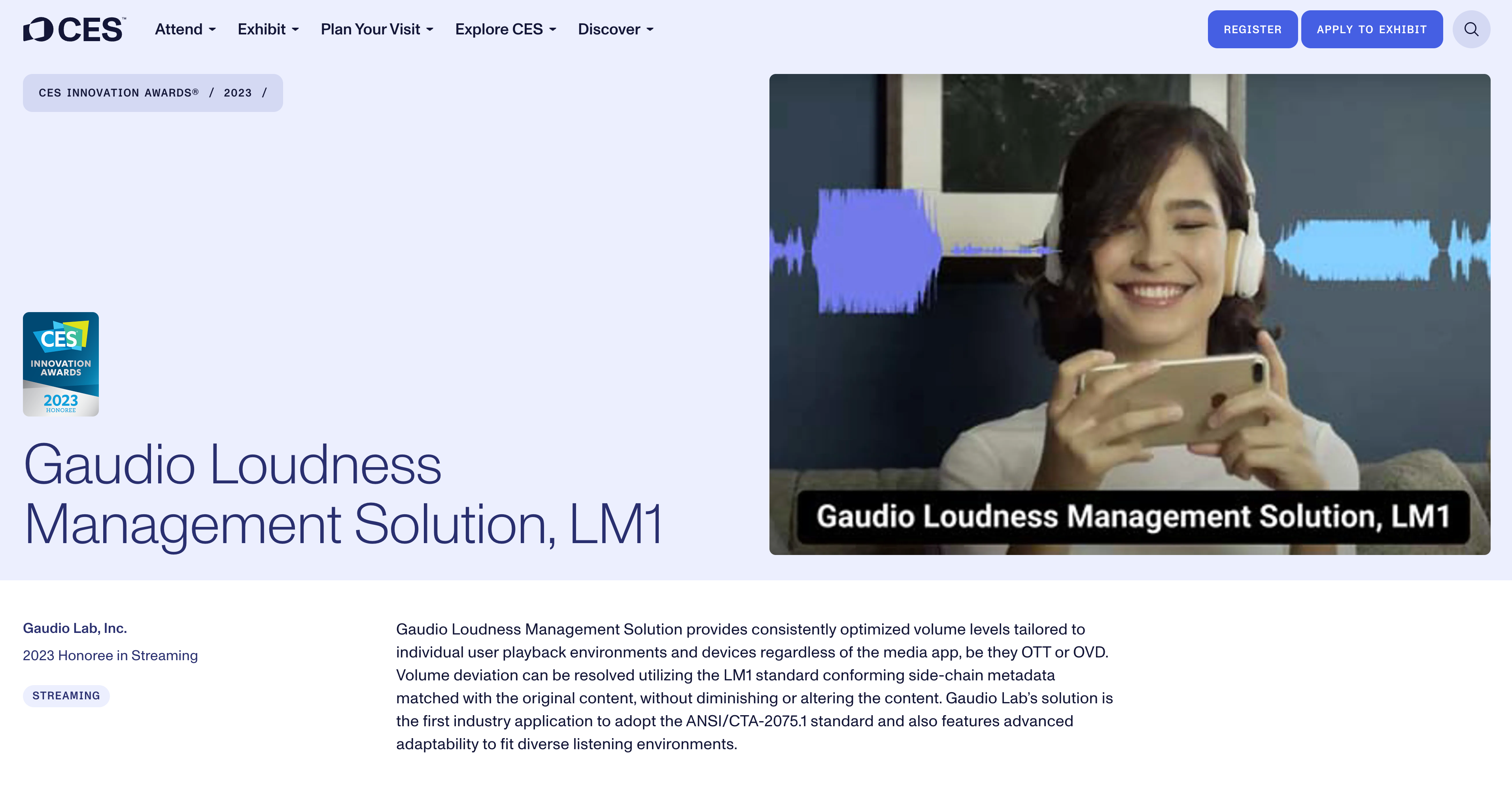 참고로 가우디오랩의 라우드니스 솔루션은 CES2023 혁신상의 주인공이기도 합니다.
