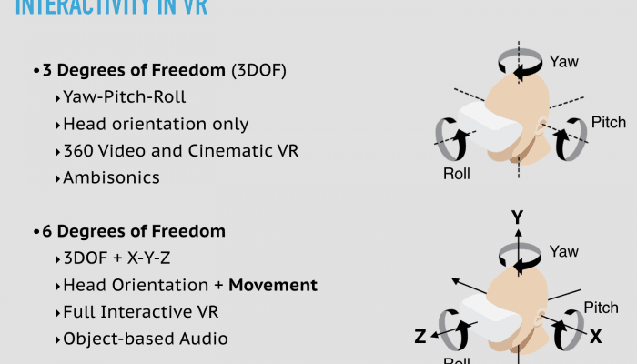 Within this continuity framework, the VR listening experience has the potential to be very confusing. The way you hear sounds in VR might be totally different from the way you have been listening in the real world or while consuming more traditional content. At a concert or a conference, you see where the sound is originally generated from — the musician or the lecturer. However, unless you’re a VIP every time, you are actually hearing the sound from loudspeaker locations and not from the actual sound sources. This discrepancy also occurs when you watch something at the theater. The screen, filled with things that are responsible for the sound, is placed at the front while the sound is actually projected from speakers in various locations. Fundamentally, however, people are familiar with this listening experience — visuals are in front of them and sounds don’t necessarily match what they’re seeing.